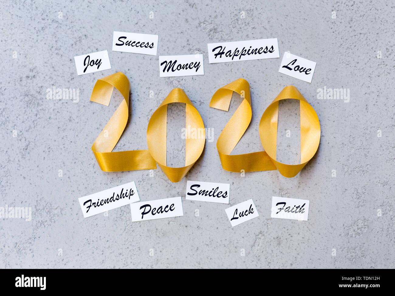 Best New Year Wishes With Gold Ribbon Text On Grey Wall Stock Photo Alamy