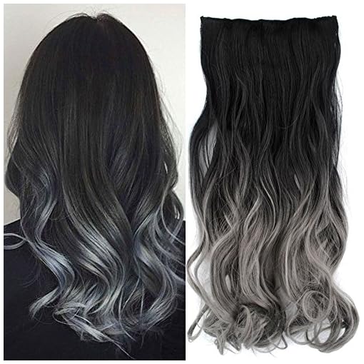 Extension Per Capelli Lisci Due Toni Di Colore Dal Nero Al Grigio Scuro 60 Cm 110 G 5 Clip Per Tutta La Testa