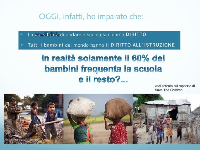 IL DIRITTO ALL'ISTRUZIONE Nel mondo ci sono ancora 130 milioni di bambini, su un totale di circa 625 milioni di minori in eta' scolare, che non ricevono un' istruzione di base Questi bambini che sono stati privati di un diritto fondamentale appartengono ai paesi in via di sviluppo In questi stati accade spesso che i. Violenza, minor accesso a istruzione e cure mediche e mancanza di un ambiente sano in cui crescere Sono le caratteristiche dei Paesi in cui donne e bambini sono più a rischio Nel mondo sono 110. Nel contesto europeo, il diritto all’istruzione è stato sancito per la prima volta dall’ articolo 2 del Protocollo addizionale (Parigi, marzo 1952) alla Convenzione europea per la salvaguardia dei diritti dell’uomo e delle libertà fondamentali, firmata a Roma il 4 novembre 1950 dagli Stati membri del Consiglio d’Europa.