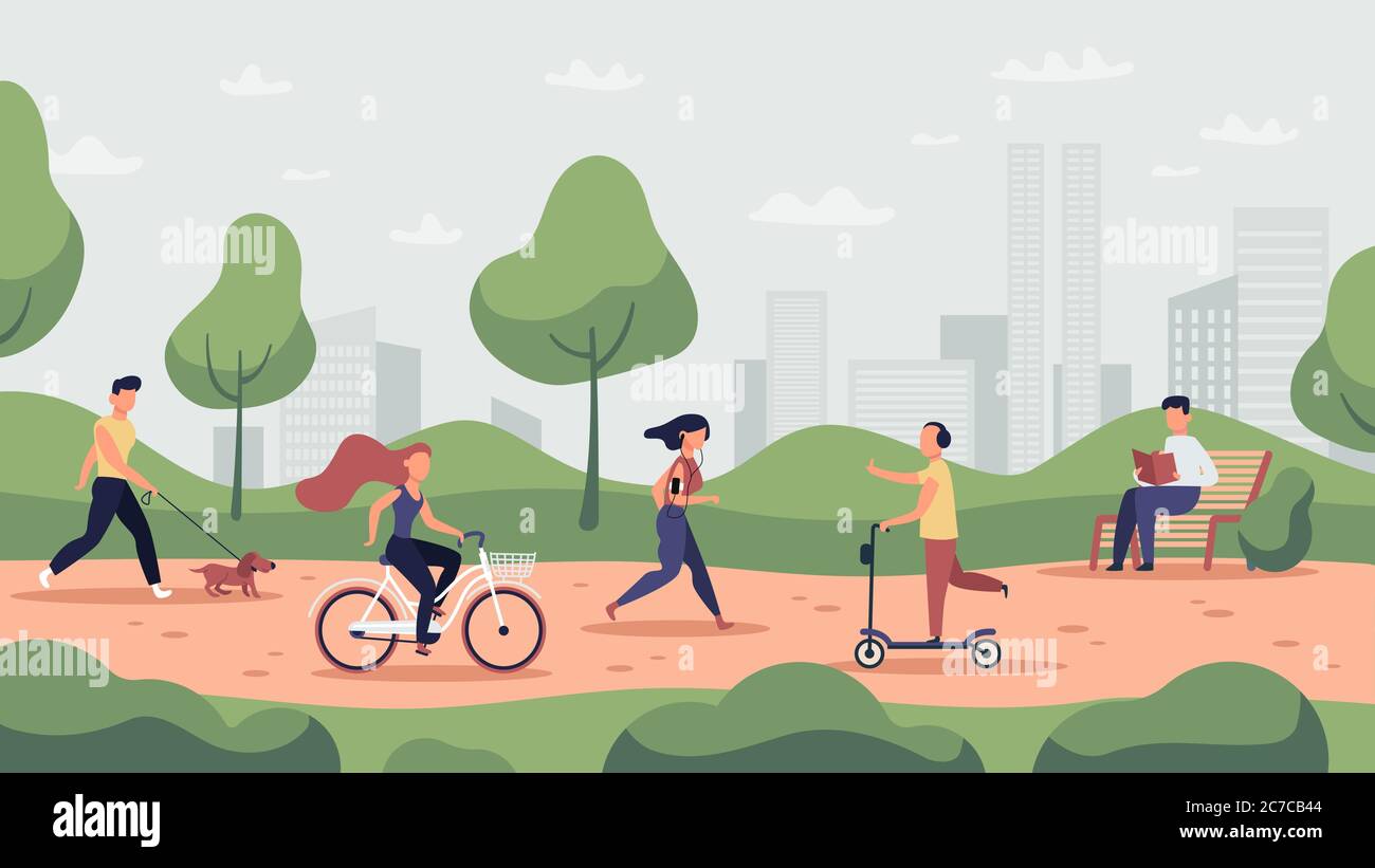Park Activities Outdoor Sport Workout And Healthy Lifestyle People Running Riding Bicycle And Jogging Park Activities Vector Illustration Stock Vector Image Art Alamy