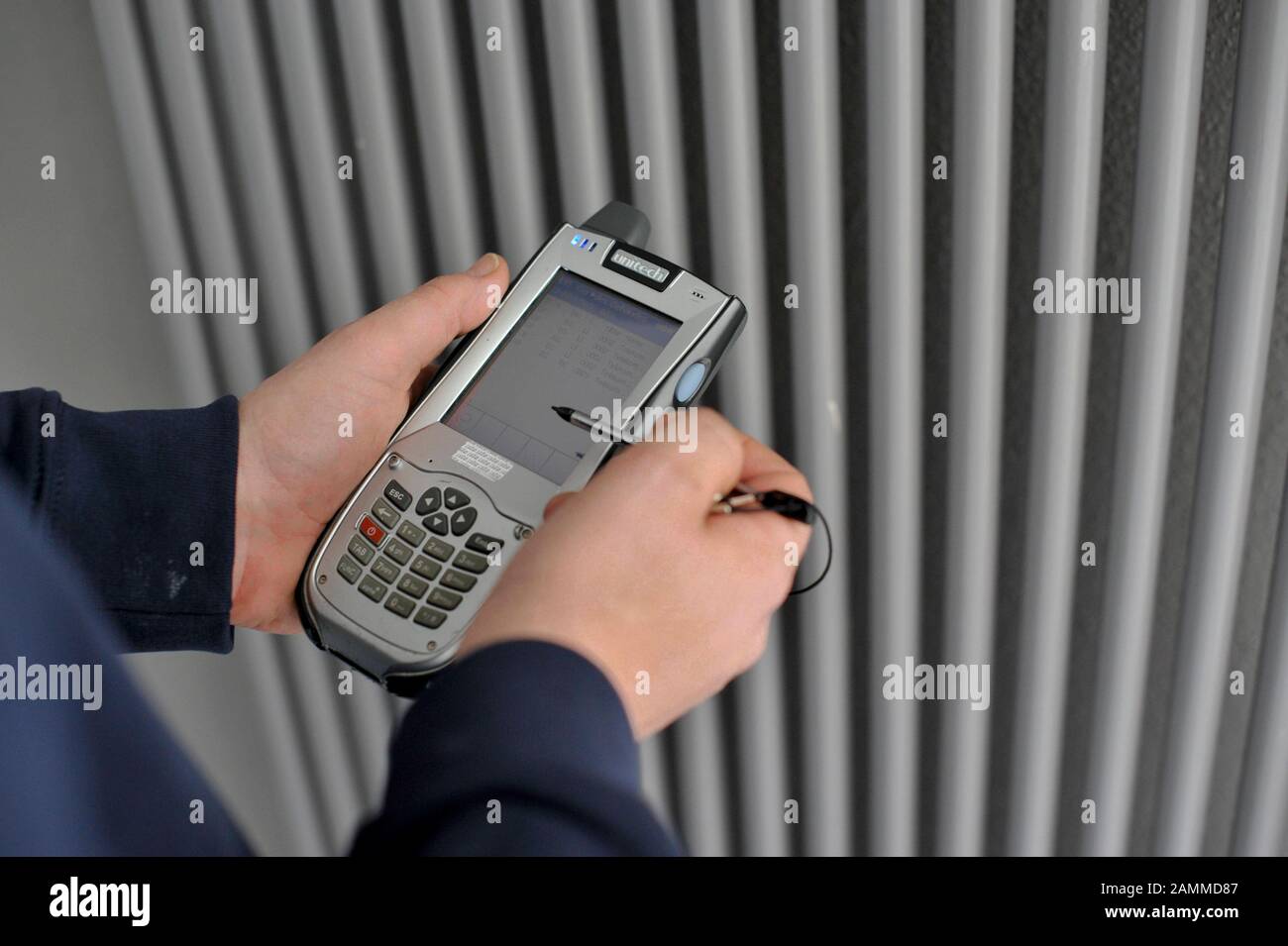 Un Lettore Di Contatori Di Riscaldamento Dell Azienda Ista Al Lavoro Traduzione Automatizzata Foto Stock Alamy
