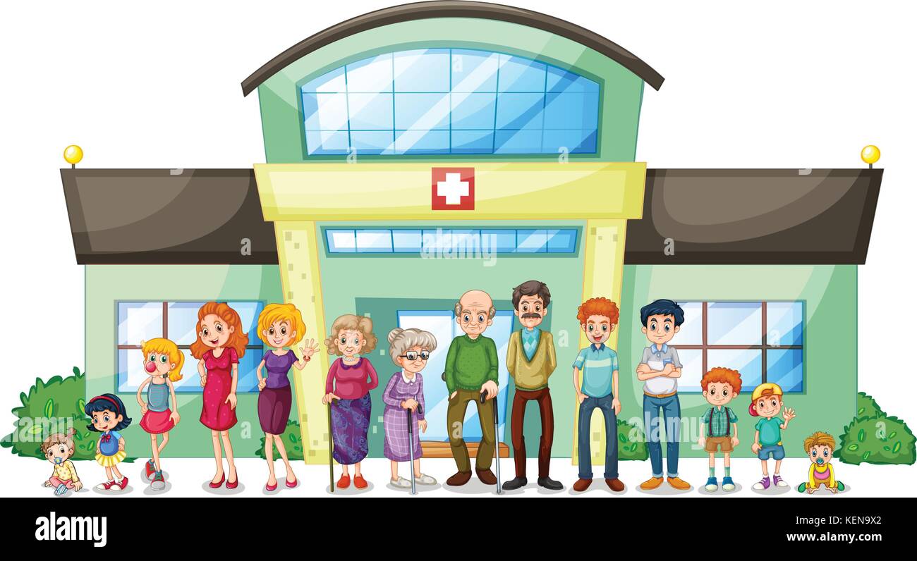 Illustrazione Di Una Grande Famiglia Al Di Fuori Della Struttura Ospedaliera Su Sfondo Bianco Immagine E Vettoriale Alamy