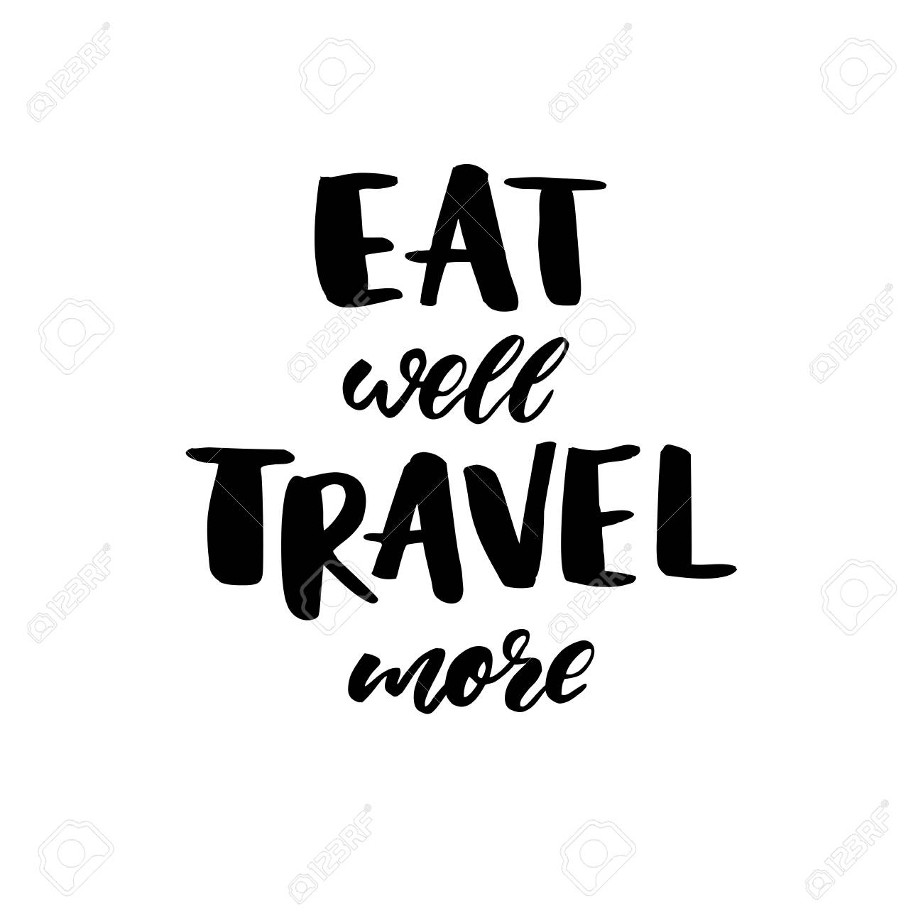 Vettoriale Mangiare Bene Viaggio Di Piu Stile Moderno Vettore Frase Citazione Ispiratore E Motivazionale A Mano Con Inchiostro Nero E Pennello Calligrafia Pennello Lettering A Mano Per I Manifesti Inviti Cartoline
