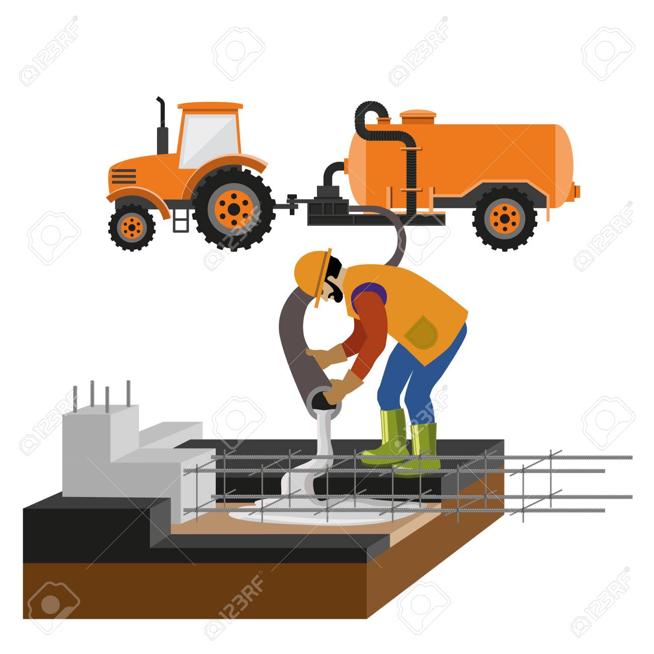 Worker At Building Site Are Pouring Concrete In Mold Vector Royalty Free Cliparts Vectors And Stock Illustration Image