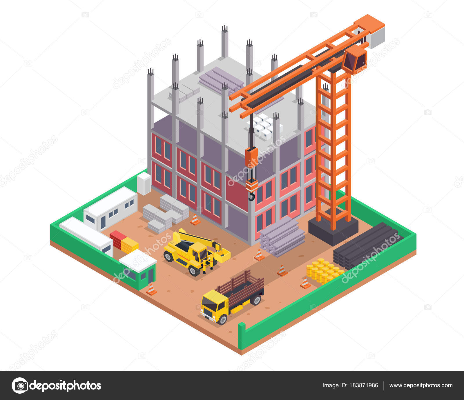 Building Construction 3d Isometric Vector Industrial Infographic Construction Isometric Infographic Industry Building Site Illustration Stock Vector Image Art Alamy