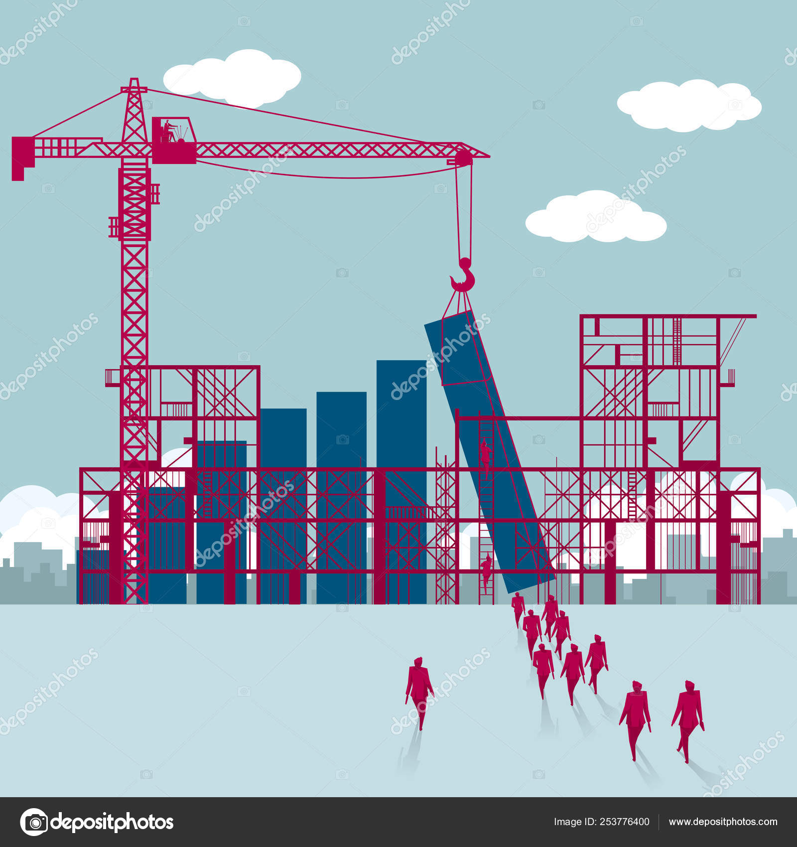 Building Site Teamwork Concept Group Businessmen Walked Chart Being Built Stock Vector C Fandijki
