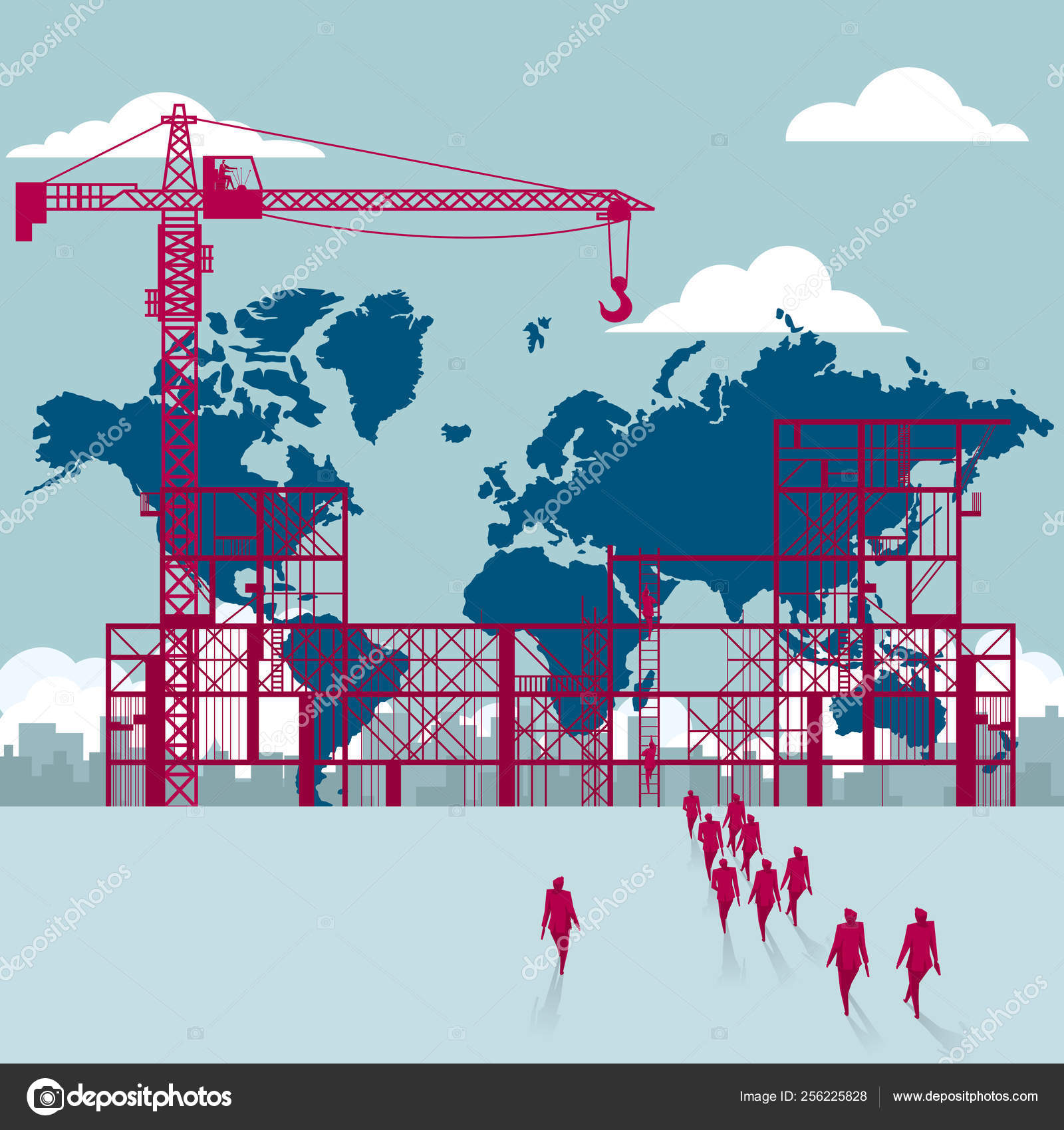 World Map Construction Group Businessmen Walked Building Site Stock Vector C Fandijki