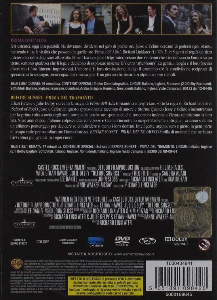 Amazon Com Prima Dell Alba Prima Del Tramonto 2 Dvd Italian Edition Ethan Hawke Julie Delpy Richard Linklater Movies Tv