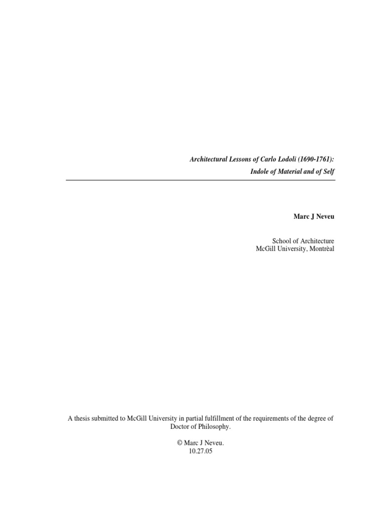 Architectural Lessons Of Carlo Lodoli 1690 1761 Indole Of Mate Pdf University Veneto