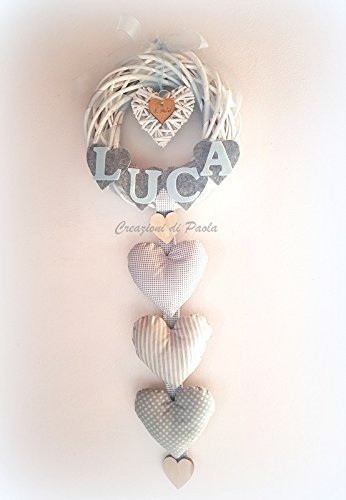 Fiocco Nascita Con Ghirlanda Bianca E Cuori In Stoffa Amazon It Handmade