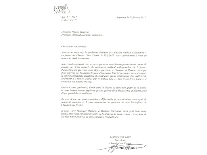 In Support Of The Chronic Care Center This Medico Social Institution Specializes In The Treatment And Follow Up Of Thalassemic And Diabetic Children Ouidad Hachem Foundation