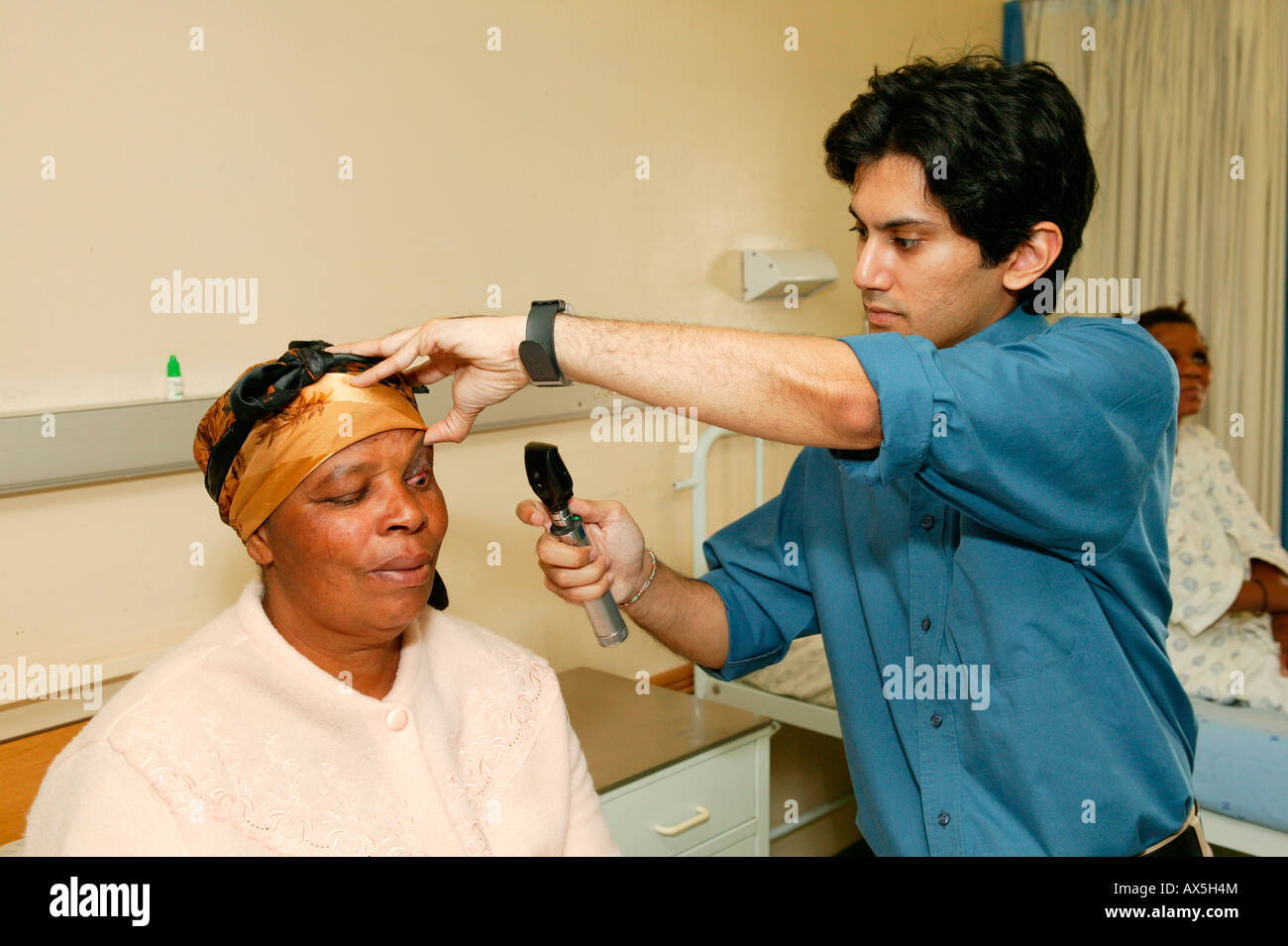 Medico E Paziente Durante Il Periodo Di Follow Up Esame Dopo Chirurgia Della Cataratta Pietermaritzburg Sud Africa E Africa Foto Stock Alamy
