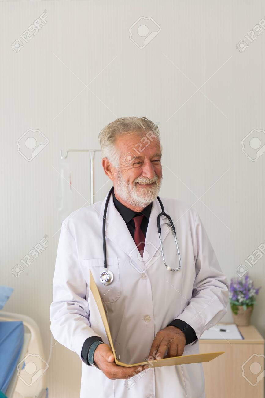Immagini Stock Senior Doctor Reading Patient Profile Information With Result And Follow Up Method Treatment At Hospital Doctor Make Routine Health Check Image