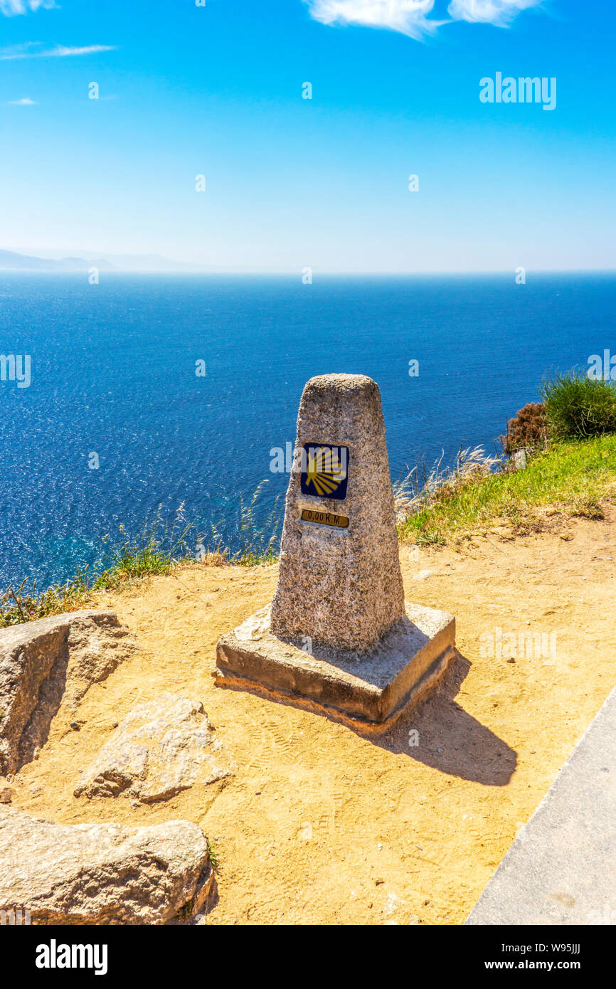 Kilometro Zero Marker Al Capo Finisterre Cabo Fisterra O Cabo Finisterre La Fine Del Cammino Di San Giacomo Camino De Santiago Galizia Spagna Foto Stock Alamy