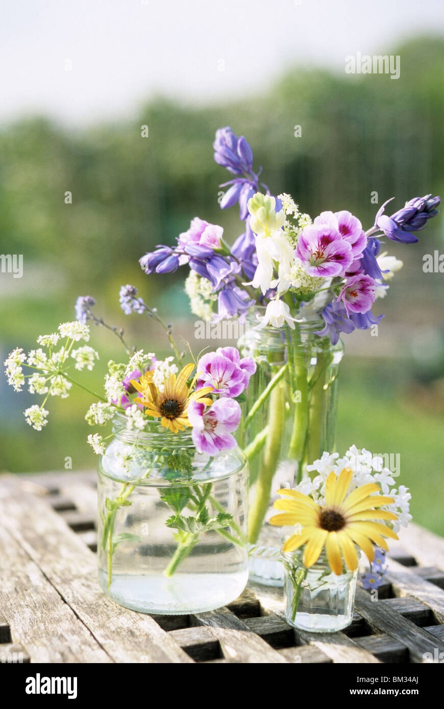 Tre Vasi Di Vetro Di Fiori Selvatici In Inglese Foto Stock Alamy