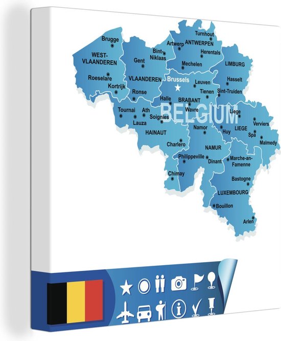 Bol Com Illustratie Van Een Kaart Van Belgie En Haar Grote Steden Canvas x Cm Klein