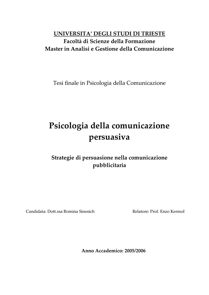 Tesi Psicologia Della Comunicazione Persuasiva Romina Sinosich Pdf