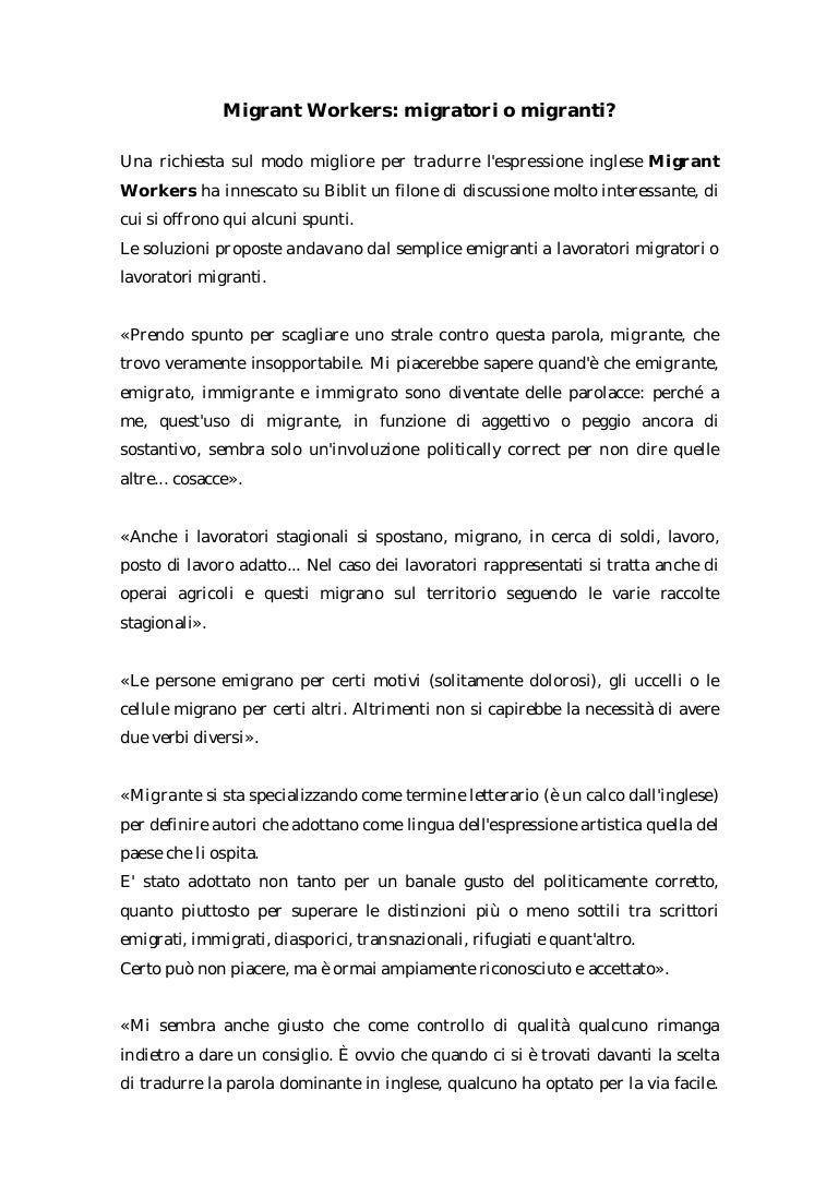 Migrant Workers Migratori O Migranti