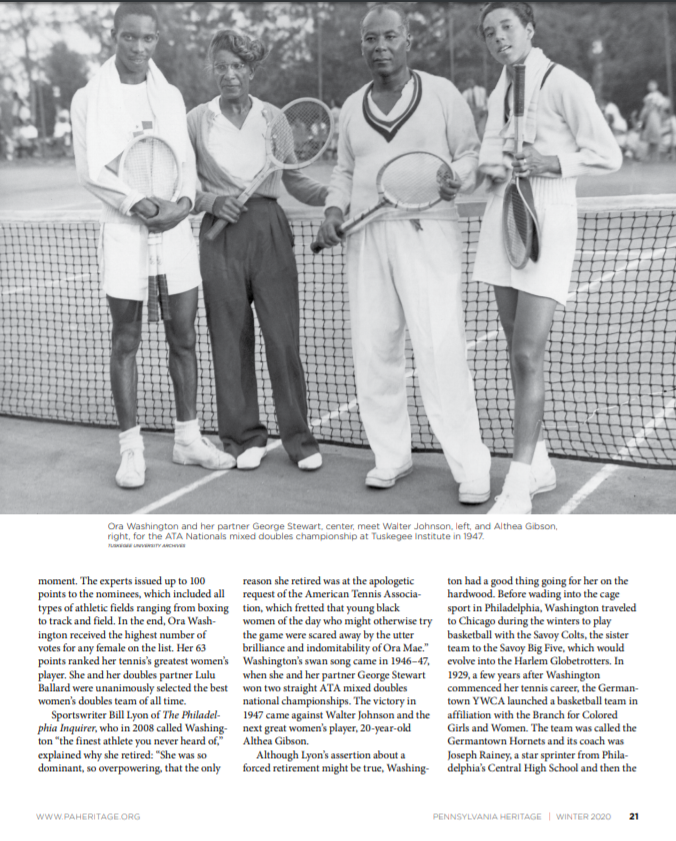 Todd Mealy Ph D I M Very Excited Abt This Piece In The Dec Issue Of Pa Heritage Mag While Ora Washington Was 1 Of Usa S Most Dominant Athletes Her Feats Are