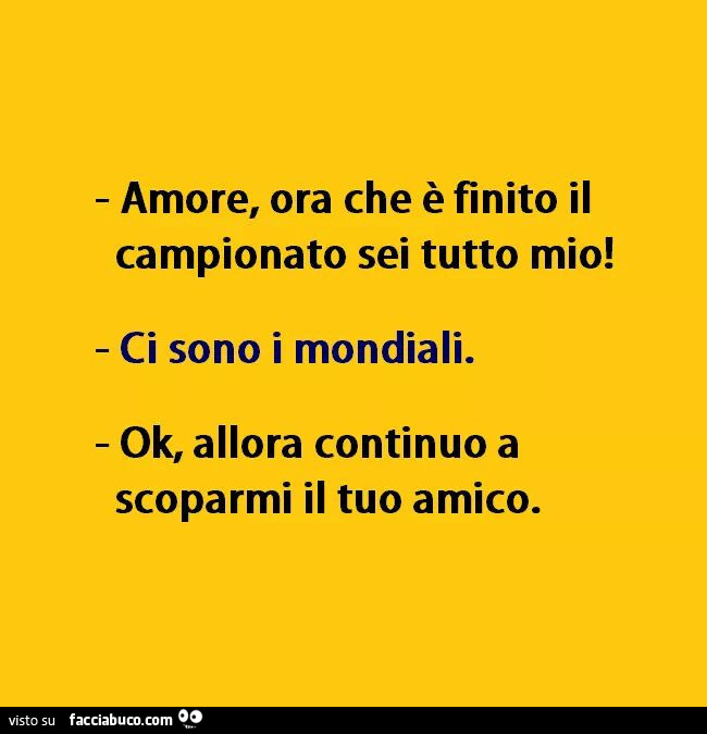 Amore Ora Che E Finito Il Campionato Sei Tutto Mio Ci Sono I Mondiali Ok Allora Facciabuco Com