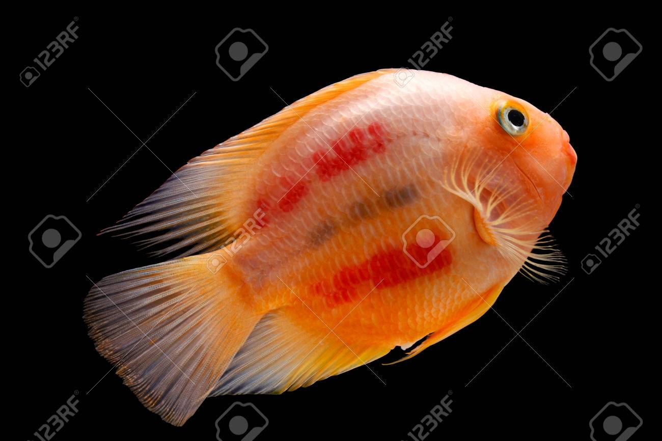 Painted Blood Parrot Cichlids Cichlasoma Sp Isolated On Black Stock Photo Picture And Royalty Free Image Image