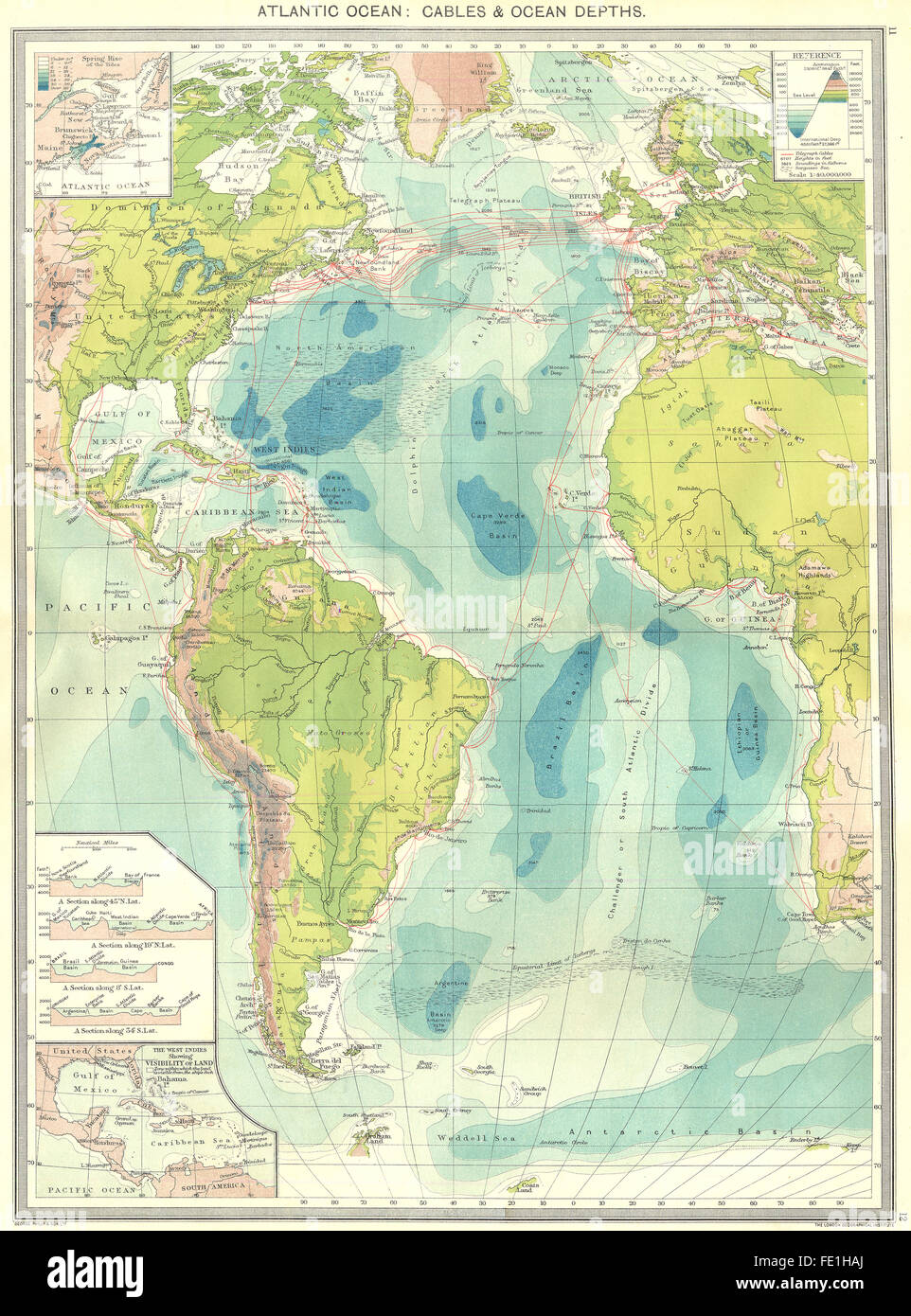 Oceano Atlantico Cavi Profondita Spring Tide West Indies Vis Terra 1907 Mappa Foto Stock Alamy