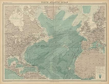 North Atlantic Ocean Rotte Correnti Profondita The Times 1922 Old Antique Mappa Vintage Stampato Mappe Dell Oceano Atlantico Amazon It Casa E Cucina