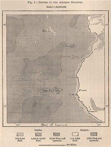Antiqua Print Gallery Profondita Dell Azorian Atlantico Oceano Atlantico Azzorre 15 Mappa Antica Amazon It Casa E Cucina