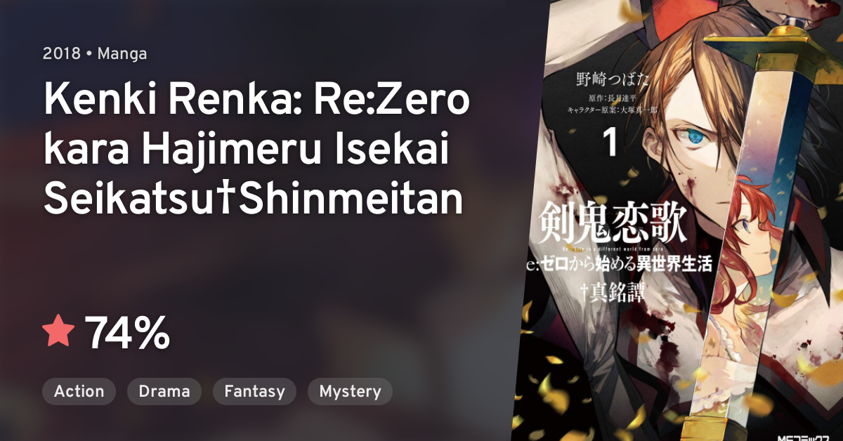 Kenki Renka Re Zero Kara Hajimeru Isekai Seikatsu Shinmeitan Anilist
