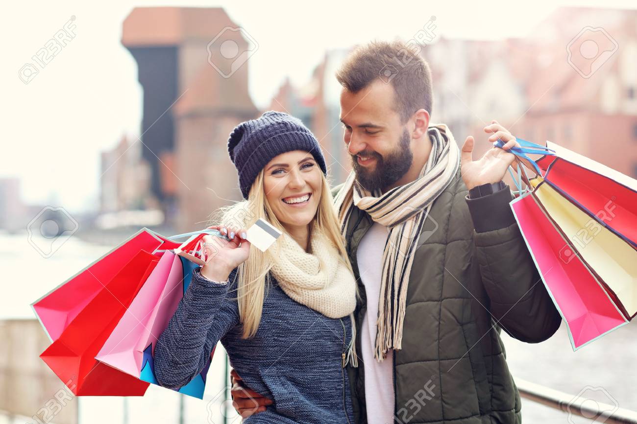 Immagini Stock Buon Shopping Coppia In Citta Image
