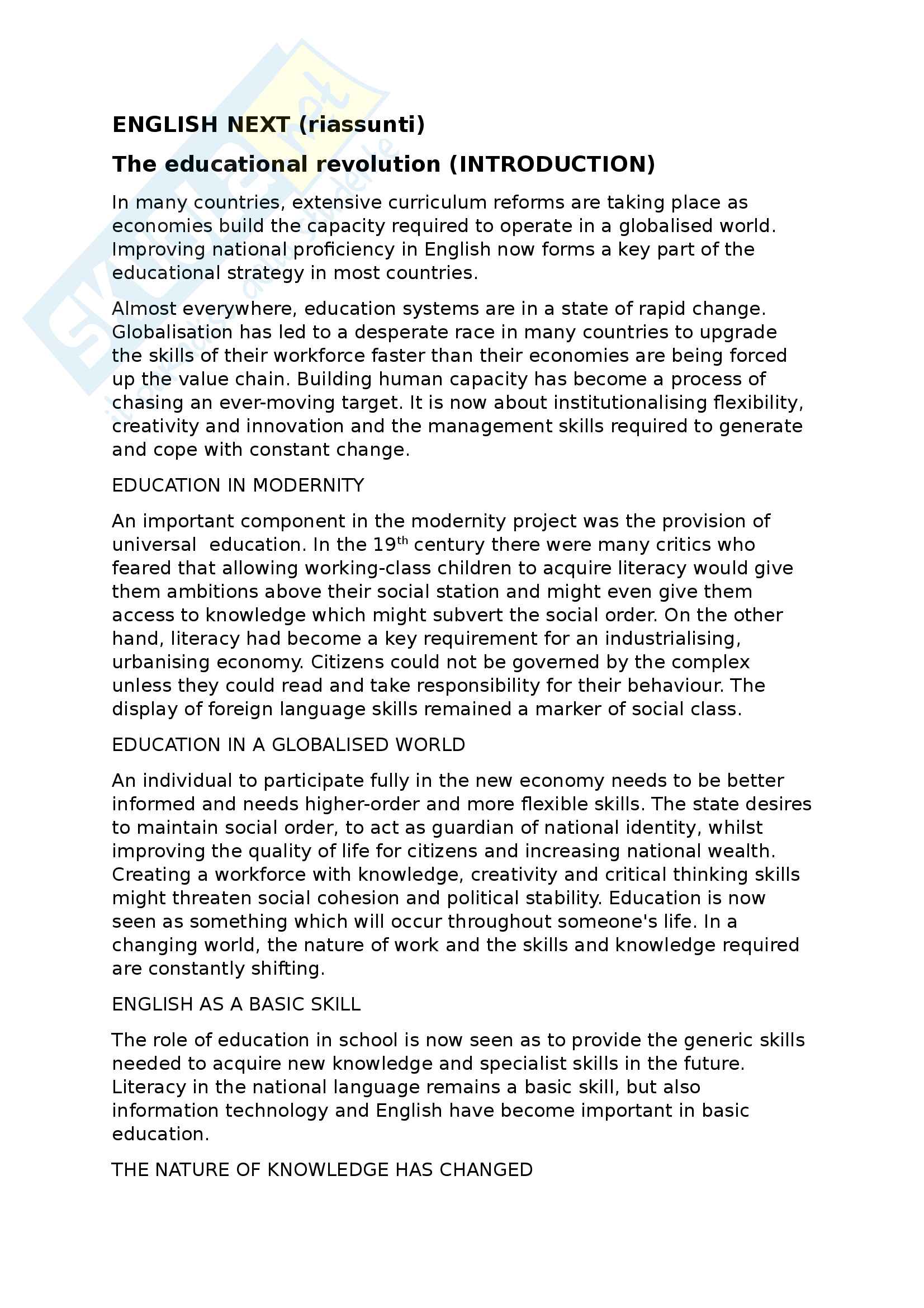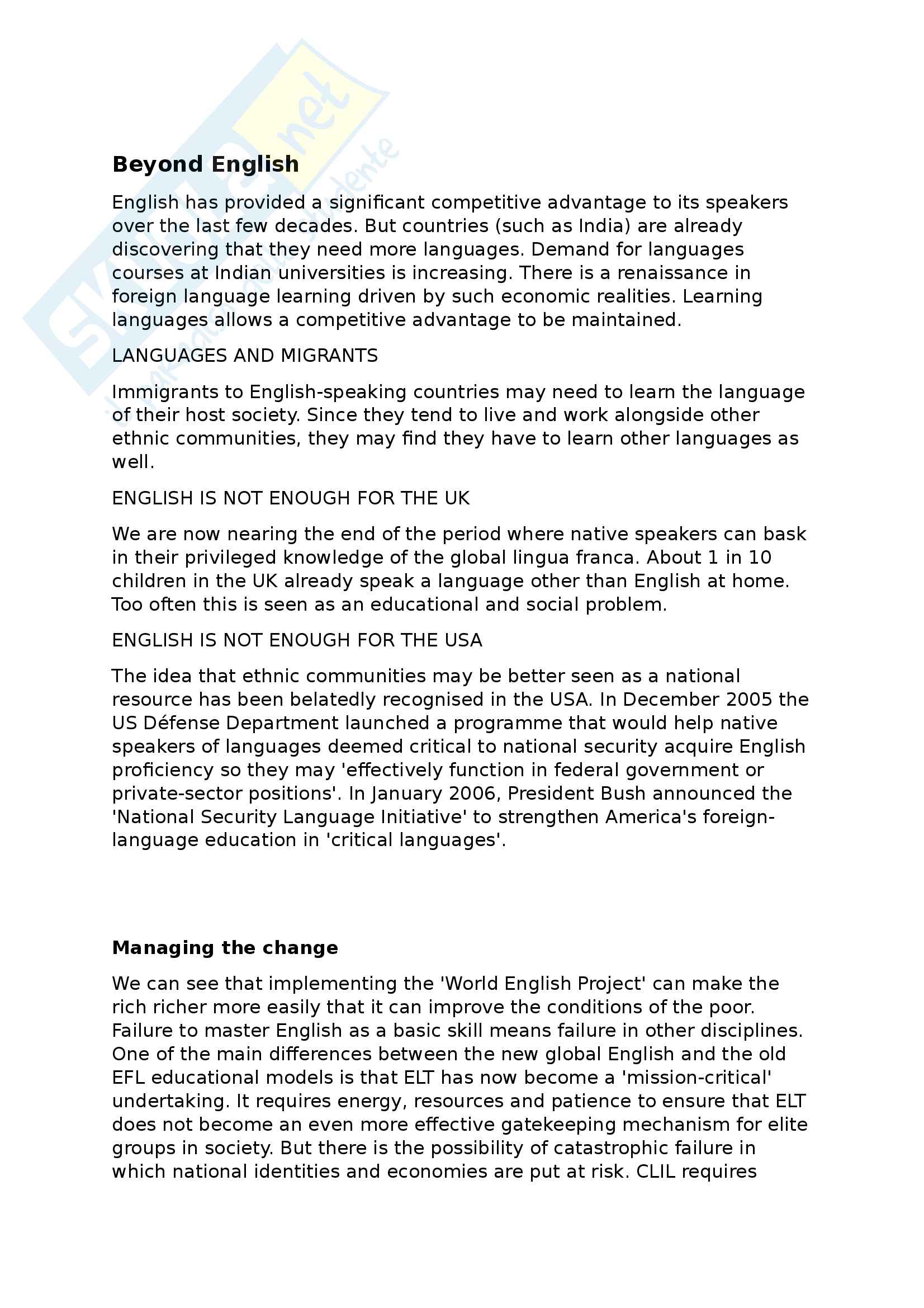 Riassunto Esame Lingua E Traduzione Inglese 1 Docente Christiansen Libro Consigliato English Next Graddol