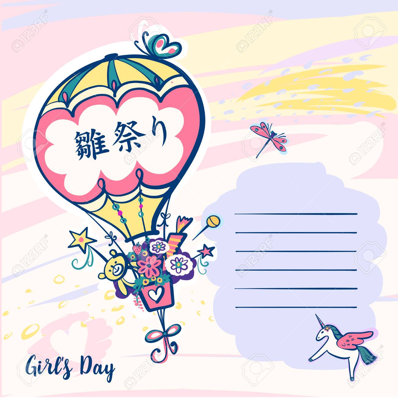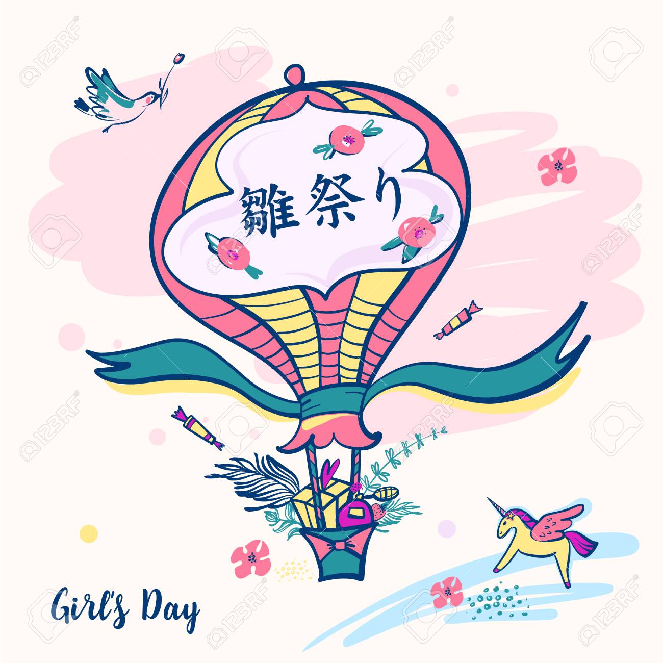Vettoriale Il Testo Della Traduzione Inglese Sul Pallone E Il Giorno Delle Ragazze Hinamatsuri Spazio Aperto Per Il Testo Image