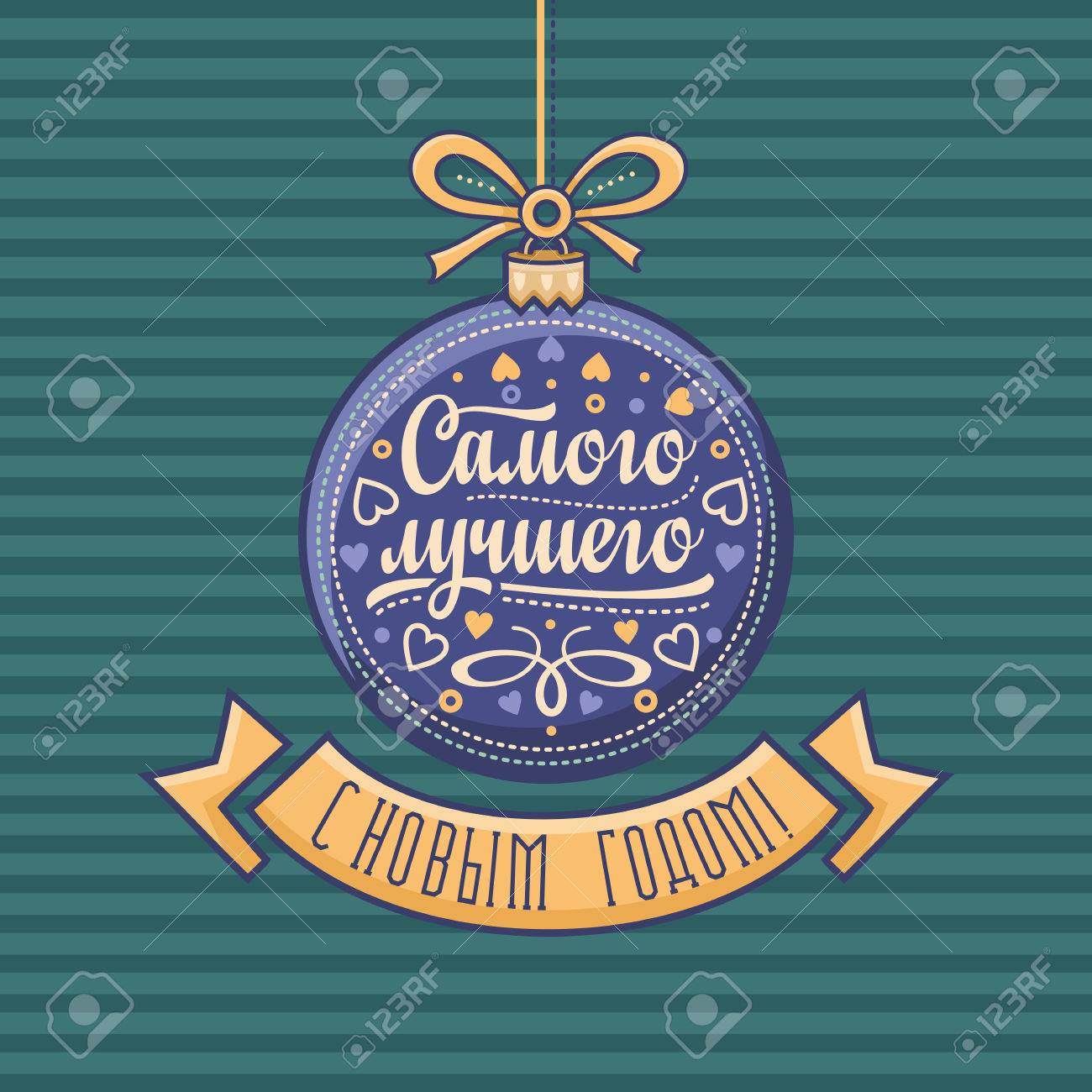 Vettoriale Cartolina D Auguri Russa Decorazioni A Forma Di Palla Violacea Immagine Vettoriale Colorata Traduzione Dall Inglese Felice Anno Nuovo Image