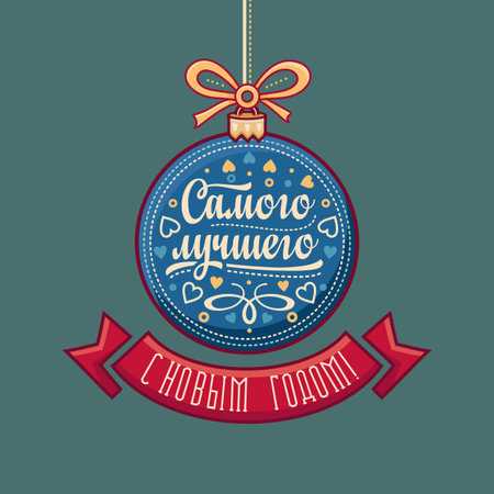 Vettoriale Cartolina D Auguri Russa Decorazioni A Forma Di Palla Blu Immagine Vettoriale Colorata Traduzione Dall Inglese Felice Anno Nuovo Image