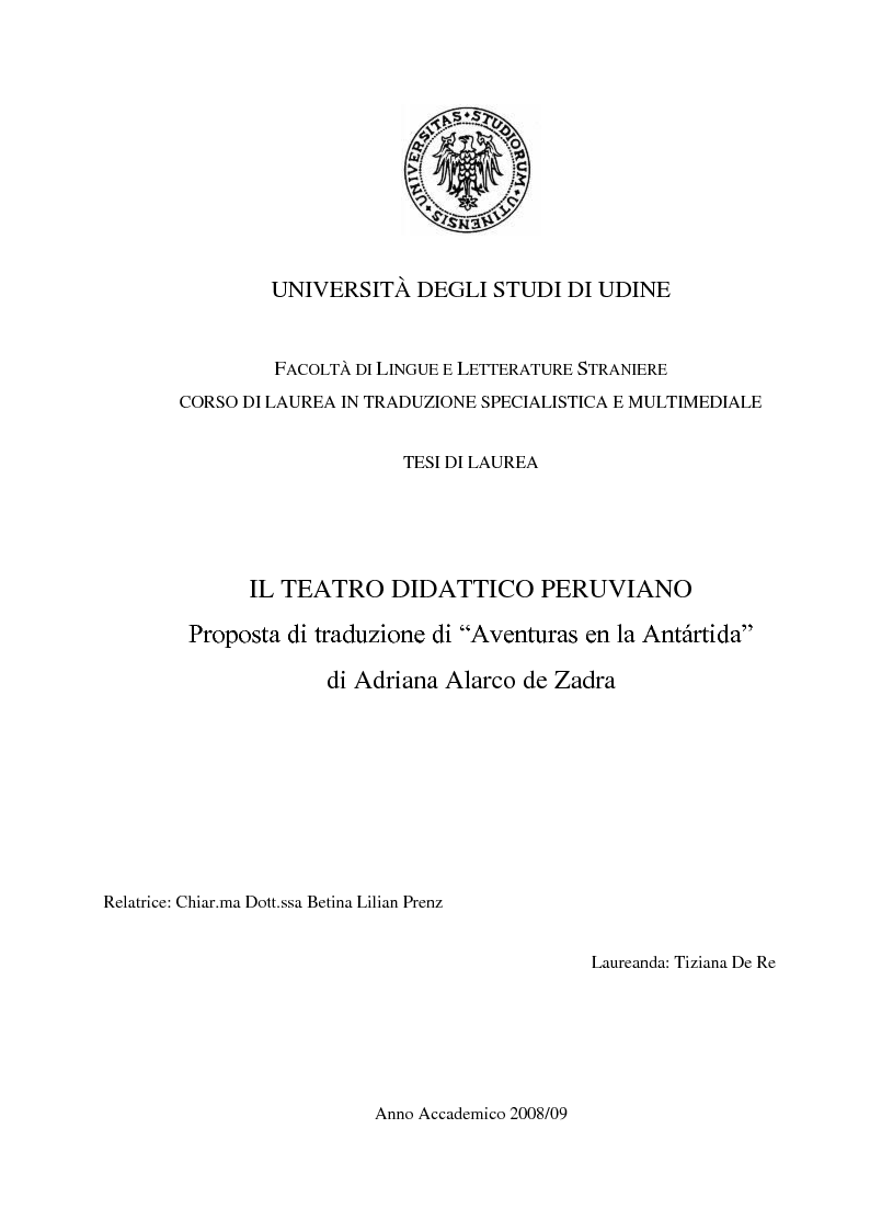 Universita Degli Studi Di Udine Facolta Di Lingue E Letterature Straniere Corso Di Laurea In Traduzione Specialistica E Multimediale Tesi Di Laurea Il Teatro Didattico Peruviano Proposta Di Traduzione Di Aventuras En