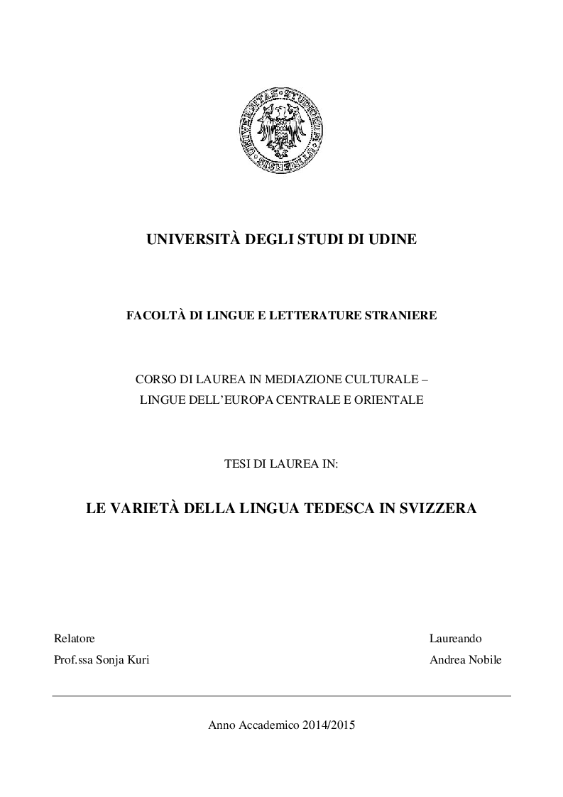 UNIVERSITÀ DEGLI STUDI DI UDINE FACOLTÀ DI LINGUE E LETTERATURE STRANIERE CORSO DI LAUREA IN MEDIAZIONE CULTURALE – LINGUE DELL’EUROPA CENTRALE E ORIENTALE TESI DI LAUREA IN LE VARIETÀ DELLA LINGUA TEDESCA IN SVIZZERA Relatore Laureando Profssa Sonja Kuri Andrea Nobile Anno Accademico 14/15. The Lingue e letterature europee e extraeuropee Department at Università degli Studi di Udine / University of Udine on Academiaedu. UNIVERSITÀ DEGLI STUDI DI UDINE Dipartimento di Lingue e letterature, comunicazione, formazione e società 10 MARZO 17 “Metodi di intervento nei disturbi delle funzioni linguistiche e della lettura” UNIVERSITÀ DEGLI STUDI DI UDINE, AULETTA FLORIO Via Palladio 8, Udine.