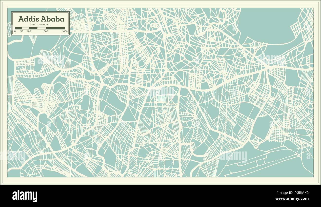 Addis Abeba Etiopia Mappa Della Citta In Stile Retro Mappa Di Contorno Illustrazione Vettoriale Immagine E Vettoriale Alamy
