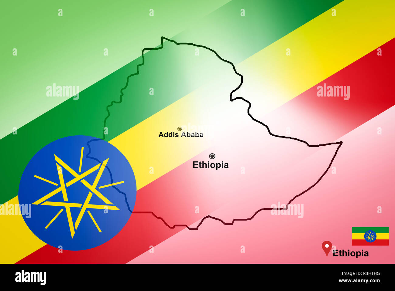 Mappa Di Etiopia E Ad Addis Abeba Con Ubicazione Sulla Mappa Il Pin E L Etiopia Bandiera Sulla Mappa Di Viaggio Asia Foto Stock Alamy