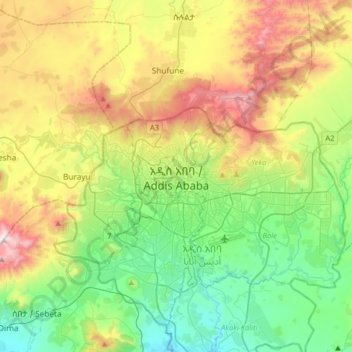 Mappa Topografica Addis Abeba Altitudine Rilievo