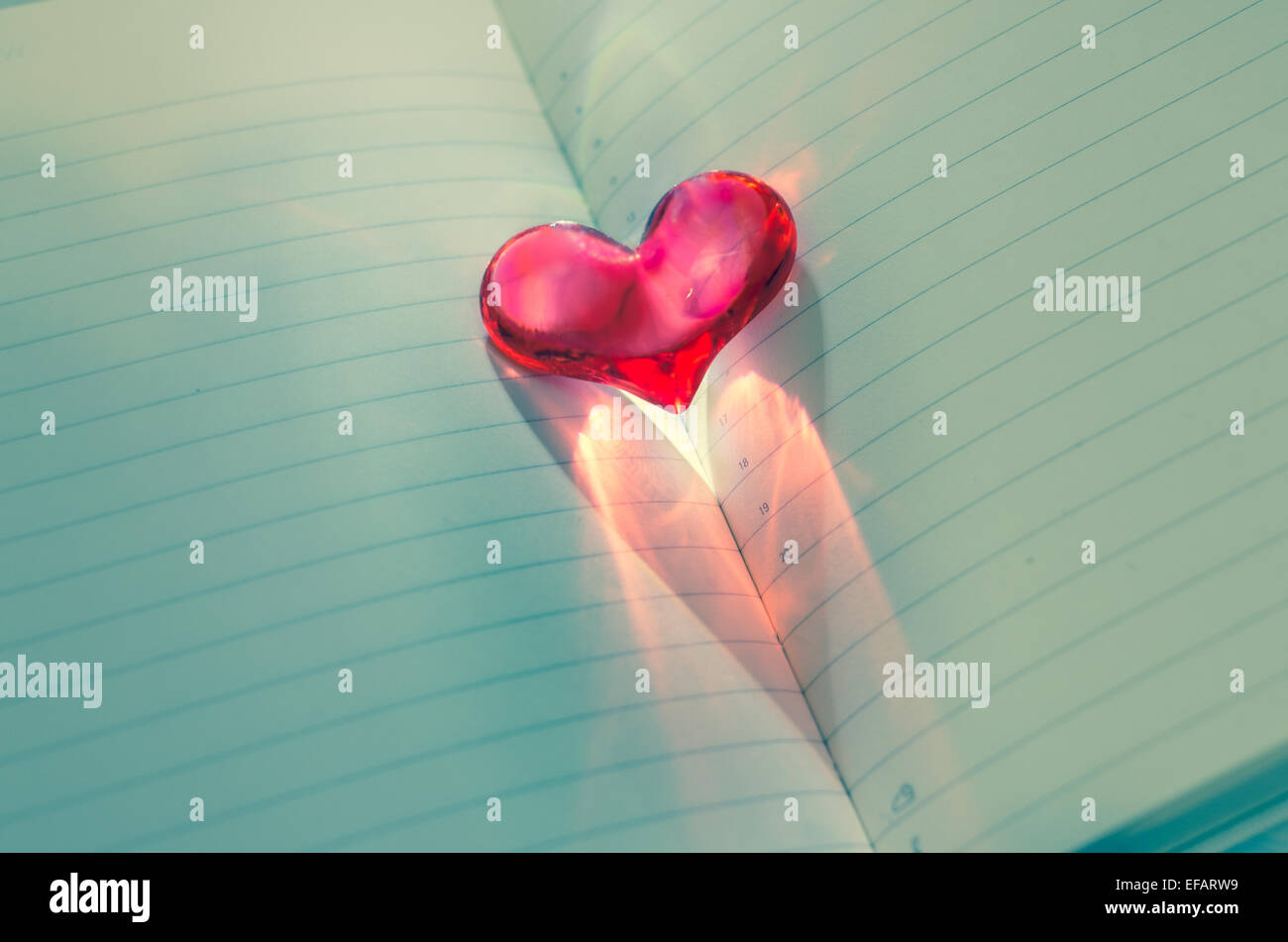 Sfondo Romantico Con Una Carta Traslucida Cuore Rosso La Colata Di Una Riflessione Incandescente Giu Le Pagine Di Una Rivista Aperta Con Rivestito Bianco Foto Stock Alamy