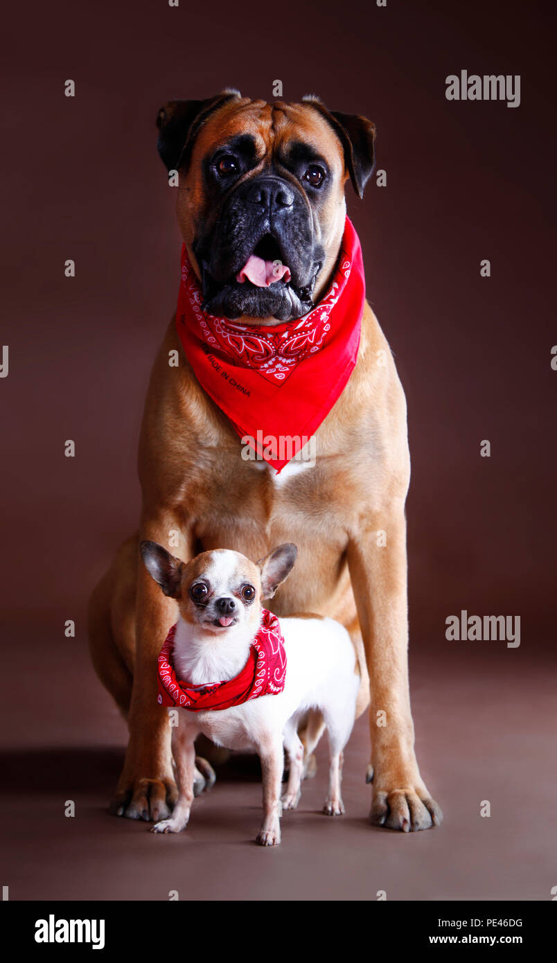 Grande E Piccolo Cane Insieme Con Il Fazzoletto Rosso In Studio Foto Stock Alamy