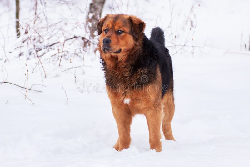 Grande Cane Rosso Nero Sulla Neve Fotografia Stock Immagine Di Pets Pensive