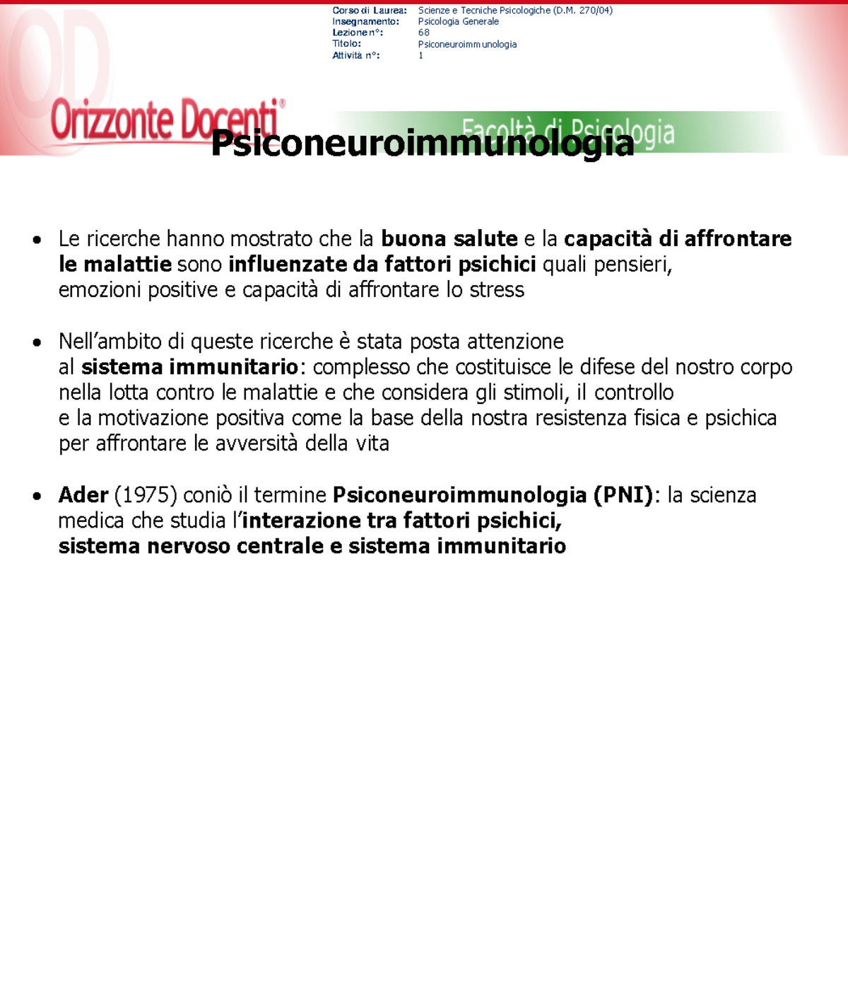 Psiconeuroimmonologia Dispensa Universitaria Studocu