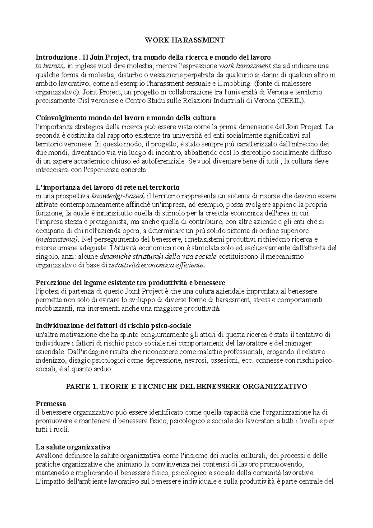 Work Harassment Psicologia Del Lavoro P Studocu