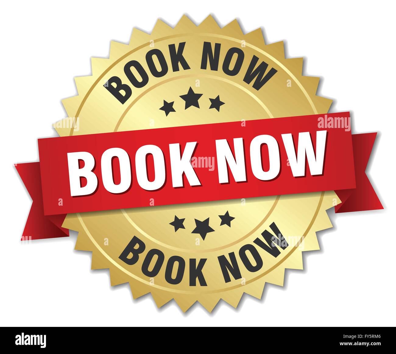 Book Now 3d Gold Badge With Red Ribbon Stock Vector Image Art Alamy
