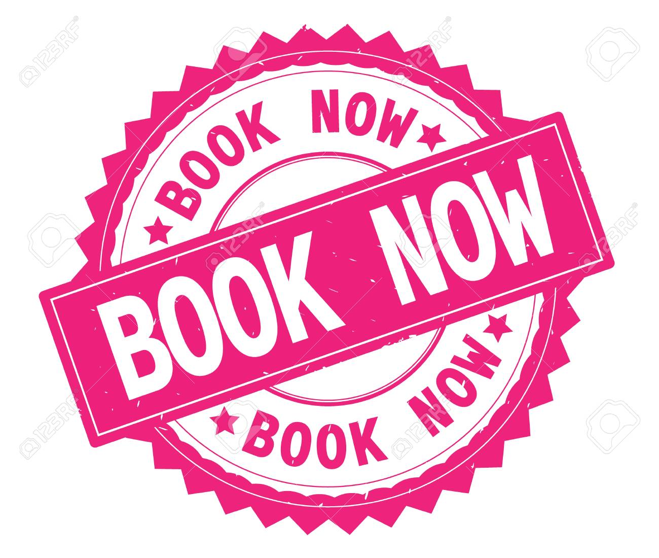 Book Now Pink Text Round Stamp With Zig Zag Border And Vintage Stock Photo Picture And Royalty Free Image Image