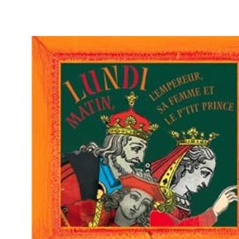 Sujet La célèbre chansonnette "Lundi matin, l'empereur, sa femme et le p'tit prince" fait défiler les jours de la semaine où un mode original d'illustrations les fait jouer Commentaire La monotonie de ce texte répétitif est rompue par la variété des illustrations. L'empereur, sa femme et le petit prince The emperor, his wife, and the little prince Sont venus chez moi Came to my house Pour me serrer la pince to shake my hand Mais comme j'étais parti, But since I had left, Le petit prince à dit The little prince said Puisque c'est ainsi, Because of this, Nous reviendrons mardi !. This article is an orphan, as no other articles link to itPlease introduce links to this page from ;.