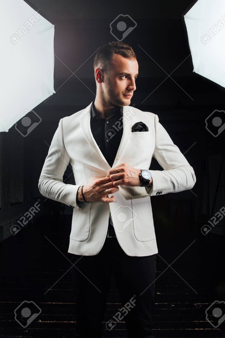 Elegant Man In A White Suit With Bristles And A Handkerchief Stock Photo Picture And Royalty Free Image Image