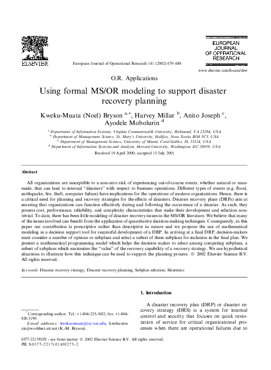 Pdf Using Formal Ms Or Modeling To Support Disaster Recovery Planning Harvey Millar Academia Edu