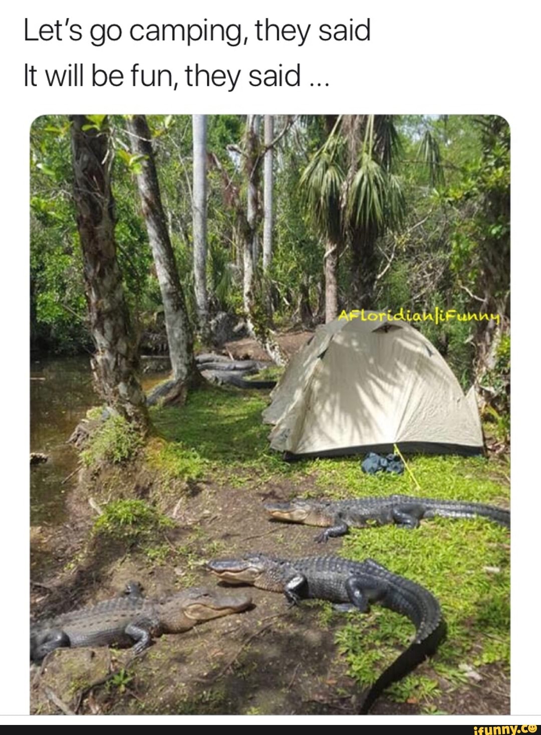 The Family family (Mama, Papa, and the three kids, Ed, Lisa, and Judy) were about to go on a camping vacation They decided to take their five dogs with them, and they needed to know how many cans of dog food to take They had received a free sample of dog food in the mail, and all the dogs really liked it The cans of the sample brand of dog food were on sale for $124, and the packaging said. LET'S GO CAMPING THEY SAID IT WILL BE FUN, THEY SAID from Imgur tagged as Fun Meme. This works fantastic for camping and you will have the comfort level to get you through a weekend My tip to you is spend a few extra dollars and get one of those “egg carton” mattress liners to go underneath the air mattress Yes, I said underneath.